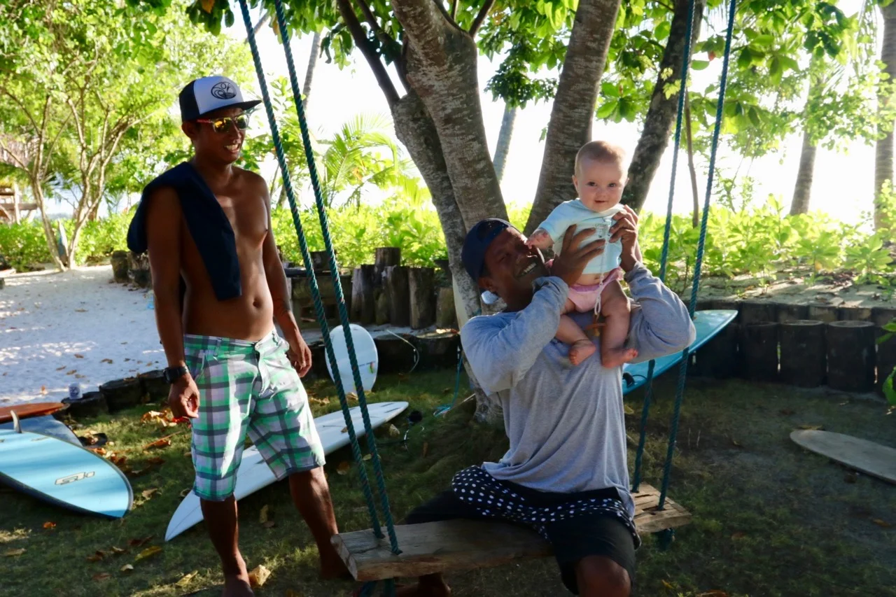 We traveled here with our two beautiful children and although it is a bit of a schlepp to get to (factor in two days of travel), it is worth every little bit of effort. And getting here is part of the journey and adventure after all. I had asked about babysitting options and was told there would be someone available if we needed. My expectations were that I’d be able to leave the kids for a couple of hours here and there so that I could get a surf in or head out on a boat with the rest of the crew. Boy were my expectations exceeded. Beyond exceeded. Although Kandui doesn’t market itself as such, it is extremely child-friendly. Kaia, our 6 month-old baby girl, was practically adopted by the local staff for the entire 10 days that we spent on the island. The ladies that looked after her were experienced, loving and so genuine. For the first few days I would hand her off for a few hours at a time and by the end of our stay, I would literally only see her for 10-20 minute slots during the day to nurse her, before she was whisked off again by the beautiful Vera (the experienced grandmother on the island), who became a second mama to her in those days. I have never experienced this level of care and love in babysitting and the word ‘gratitude’ doesn’t even begin to explain what I felt.