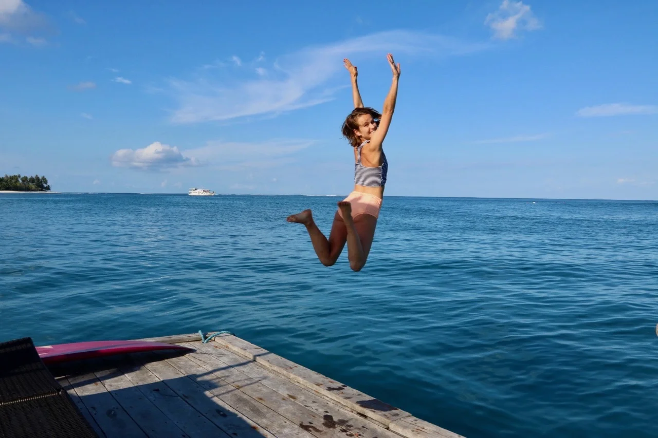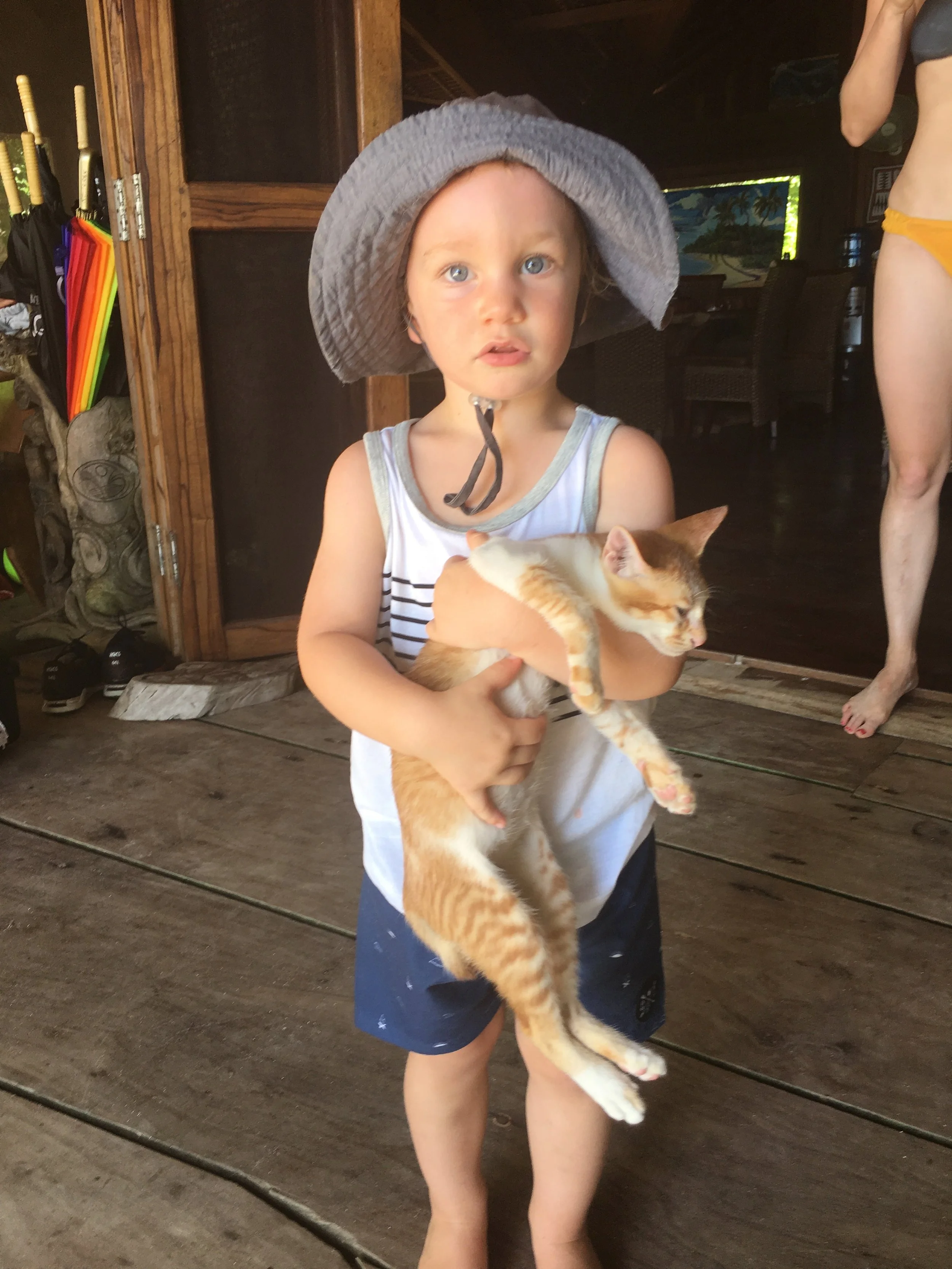 Noah, our 2.5-year-old son, was able to come with us on most outings, but if Rob and I both felt like a surf at the same time or would prefer to leave him, he was also happily minded by the warm hearted and caring staff. He spent his days playing with kittens, dogs, feeding fish, as well as the tortoise. We took him SUPing, surfing on the smaller waves out the front of the resort, took him on boat trips to watch other surf breaks, and spent hours with him playing on and off the pontoon in the ocean. There is no swimming pool at Kandui Resort but they do have plans to build one in the coming years, which will make the place even more amazing and child-friendly.